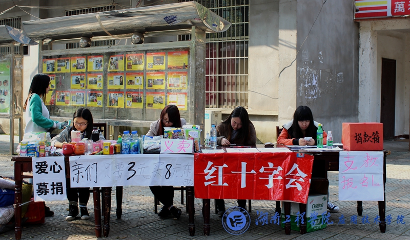 “亲们,只要三元买八元东西,商品有价,爱心无价” 3月27日早上,湖南工程学院红十字会在南校区校园商店前坪,为湘潭县青山桥镇龙舞小学的孩子们举办义卖,筹集善款。