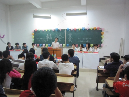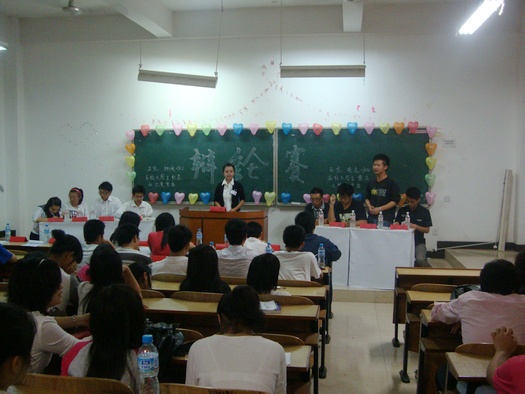 比赛共分为两场,参赛队伍是从上一场的八强辩论赛中脱颖而出的四支优秀队伍。首场比赛由电气0984班与物流0982班就“在校大学生累积知识更重要还是塑造人格更重要”的辩题展开了激烈的辩论,一开始双方就各自鞭辟入里地阐明了己方观点并据理力争,随后的自由辩论环节更是精彩绝伦,整个场内掌声经久不息,伴着双方第四辩精彩的总结陈词,首场比赛也落下了帷幕,接着由陶连洲老师分别对双方的表现作了点评。经过十分钟的稍作休整,第二场比赛也随即开始了,由土木0886班对阵经济学0881班,不得不提的是这两支参赛队有一个特点,就是正方辩手都是男生而反方辩手都是女生。双方就“大学生应该做智者还是勇者”展开了辩论,双方在立论时就开始引经据典,从多方面来证明自己观点的正确性。到了自由辩论环节,双方辩手更是妙语连珠,本场比赛最大亮点就莫过于正方和反方的四辩的精彩陈词。正方四辩奇思妙想,趣味盎然。反方四辩反应机敏,心思缜密。双方精彩的表现多次博得了老师和同学们的掌声。最后由陶连洲老师对这场辩论赛作了讲评,他夸奖反方四位辩手巾帼不让须眉的“女将”具有很强的逻辑能力和应变能力。