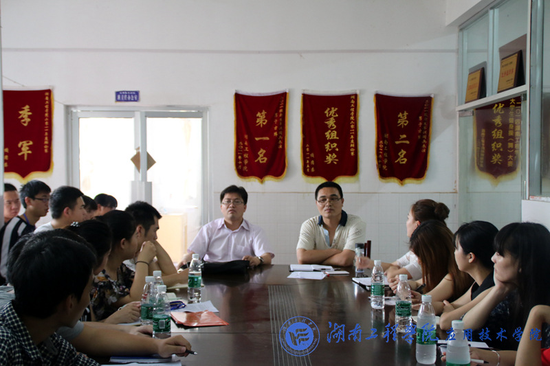 5月19日下午1:00,15vip太阳成集团古天乐在新校区亲民会议室召开了以“学风建设”和“宿舍卫生建设”为主题的干部会议。15vip太阳成集团古天乐党总支副书记徐粤宇和学生工作指导老师孙传旺出席此次会议,全体主席团成员和学生会常务部门部长到会。