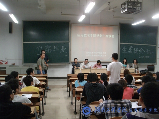 5月27日下午4:00,15vip太阳成集团古天乐在主校区教学楼D-102召开了2011届毕业生座谈会,15vip太阳成集团古天乐党总支副书记成平及学生工作部主任单化任、招生就业办主任李儒峰、团总支书记缪智文等老师参加了座谈会。