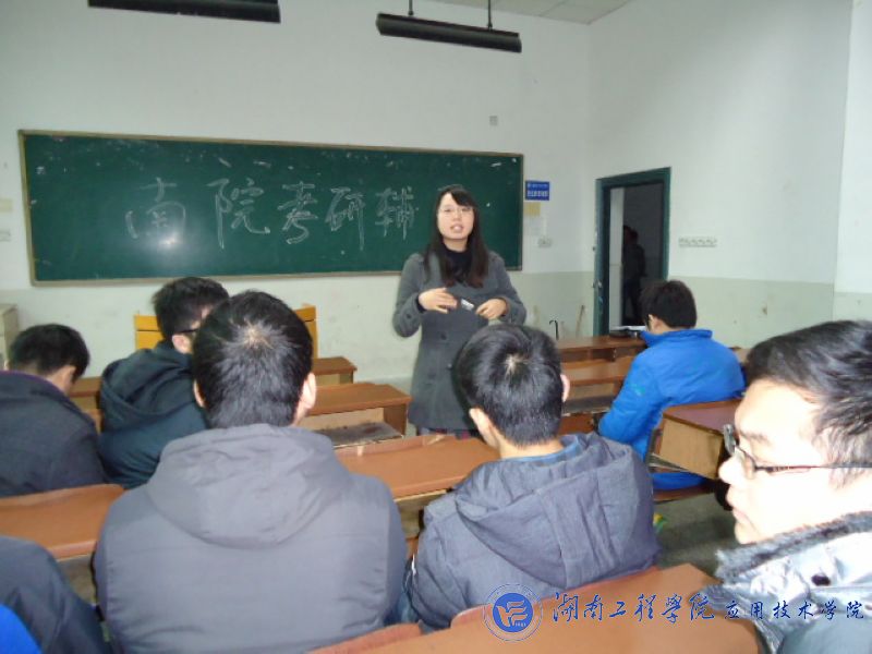 12月12日下午,15vip太阳成集团古天乐在南校区一教104召开了考前辅导会,给即将奔赴考场的考研学子们加油鼓劲。初步统计,南院有82名同学报名参加明年1月份的研究生入学考试。党总支副书记徐粤宇、辅导员王尔奇老师出席了辅导会。