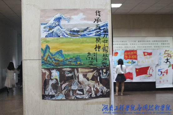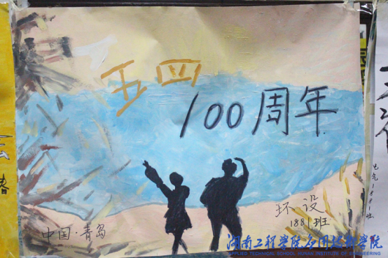 在活动开始之前,各班级将宣传五四精神的手绘海报粘贴在第一教学楼的大厅处,一张张栩栩如生的海报映入眼帘,引来了同学们驻足观看。活动开始,各班组织观看“纪念五四运动一百周年”大会视频,在视频结束后每个班结合主题况开展了形式多样的主题活动,如环设1881、1882班在观看完视频后统一起立歌唱共青团歌、举行了关于五四精神的知识竞答;英语1881、1882班和电信1881班通过PPT解说五四精神,播放关于五四运动历史视频,组织与主题相关的游戏。