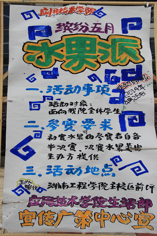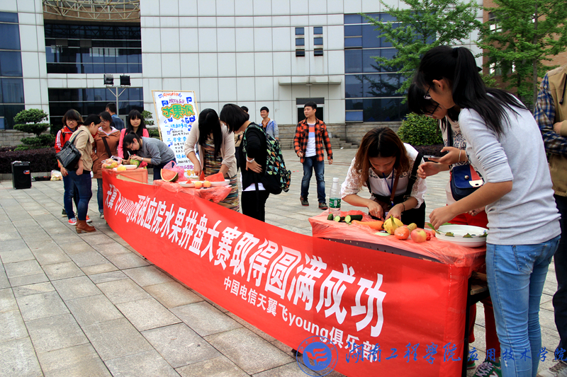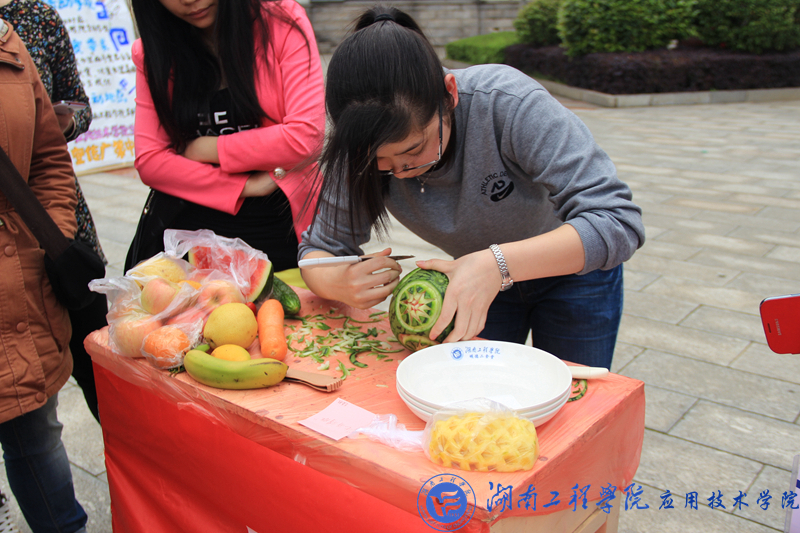 4月27日下午1:30,15vip太阳成集团古天乐生活部主办的水果拼盘大赛在知行广场举行。这次比赛将决出一二三等奖以及最佳创意奖和纪念奖。大赛评委由团总支学生会主席团担任。