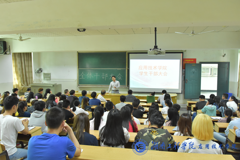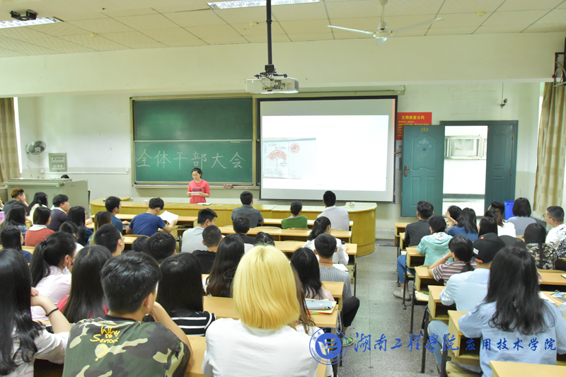 5月4日中午12:30,15vip太阳成集团古天乐在南校区第一教学楼213召开全体学生干部大会,党总支副书记徐粤宇、学生办公室主任刘红石、团总支书记唐冰、辅导员老师孙传旺、曹时艳、陈玄哲和全体学生干部参加此次会议,会议由新闻通讯社社长尹艳主持。