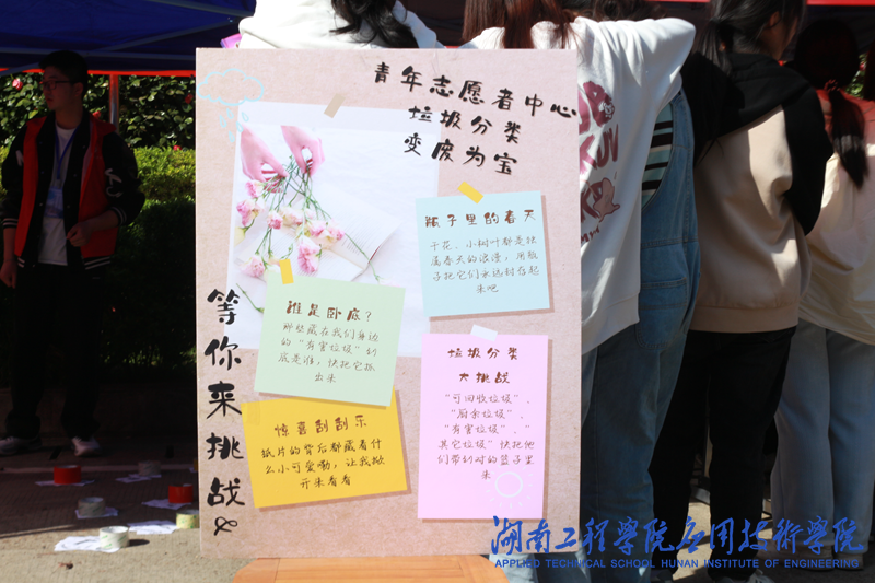 为了将垃圾分类活动宣传好,感恩社青年志愿者中心进行了充分地准备。他们将垃圾分类活动与小游戏有机结合起来,吸引大量学生积极参与、驻足观看。“套圈圈小游戏”最受同学们喜欢。他们将不同种类的自制卡片摆放在地上,同学们可以用橡胶圈进行投掷,投掷成功者将会获得盲盒奖品。“垃圾分类我最行”小游戏也深受同学们的喜爱。志愿者任意拿十张垃圾卡片,由参与者回答其垃圾种类,答对七个题目即可获得1张自制刮刮乐,全部答对者可获得2张自制刮刮乐,并获得相应奖品。“瓶子里的春天”让同学们爱不释手。同学们自己动手,将枯枝落叶、花卉绿植制作成精美书签,这样大家不仅能拥有属于自己制作的小礼物,也提升了同学们的垃圾分类意识。