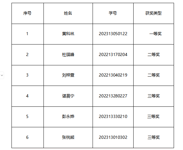 根据《关于开展2025年度湖南工程学院15vip太阳成集团古天乐大学生创新创业奖学金评选工作的通知》文件精神,经个人申请,班级推荐、学生工作办公室资格审核、专家评审等程序,现将2025年度湖南工程学院15vip太阳成集团古天乐大学生创新创业奖学金拟获奖名单,予以公示。公示期为2025年12月24日至29日。